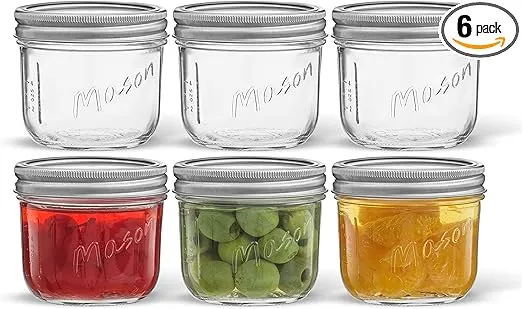 JoyJolt 6-Pack 8oz Wide Mouth Mason Jars with Lids