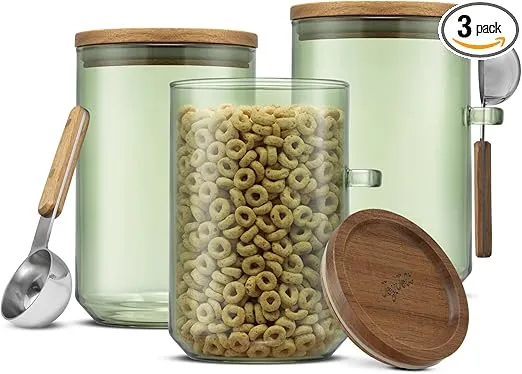 - GIFT THE JOY OF A TIDY SPACE: Crafted for everyday convenience, these glass containers with lids are dishwasher safe, while the wooden lids should be wiped with a damp cloth. Securely packaged with a limited 1-year warranty, they make a stunning gift for home organizers and kitchen lovers alike!